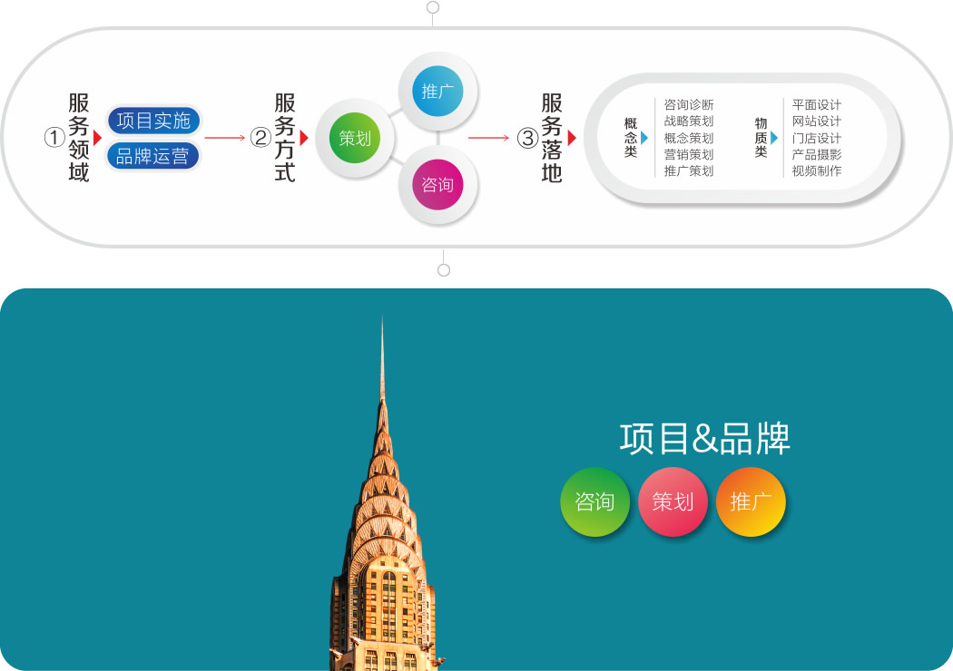 一站式服務(wù),能保證品牌各個環(huán)節(jié)呈現(xiàn)出的作品,能形成一個相對平衡的整體形象水準(zhǔn),避免因為不同公司服務(wù)而造成的參差不齊。